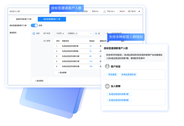 添加客户成功后,按客户标签自动邀请客户加入指定群聊