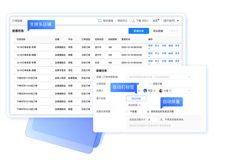 订单自动同步、订单导入、历史订单拓客、当前订单拓客