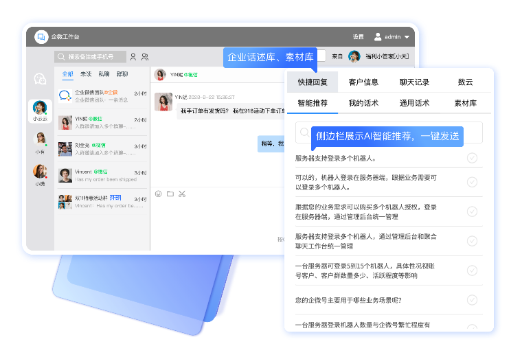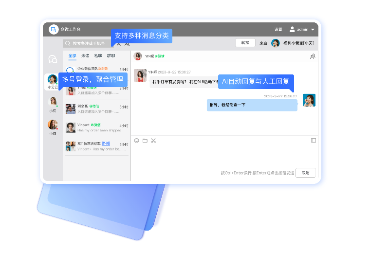 ​多账号统一运营,聚合客服、智能回复、信息共享