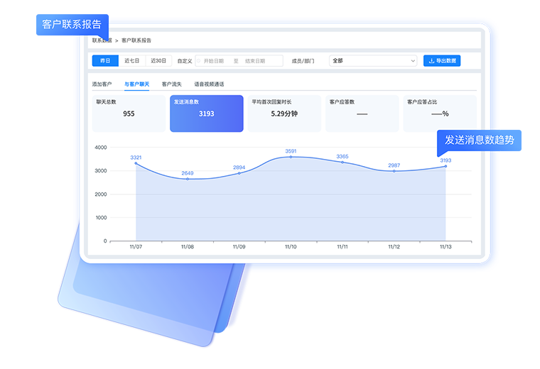 实时追踪客户活跃动态,洞悉活跃周期趋势,聚焦企业成员回复时效与质量,精进服务流程以提升客户满意度