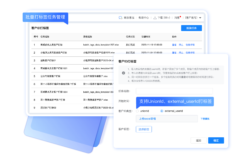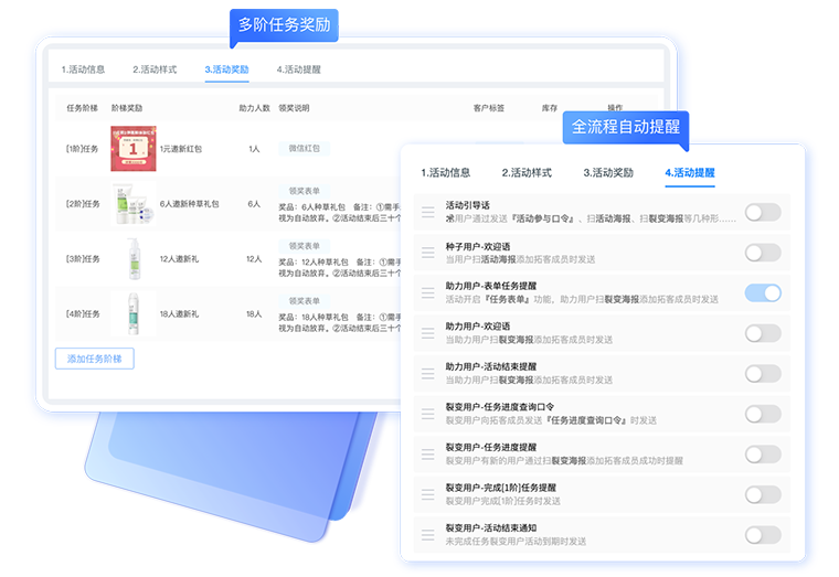 客户标签:参与活动、完成活动多个环节支持打客户标签