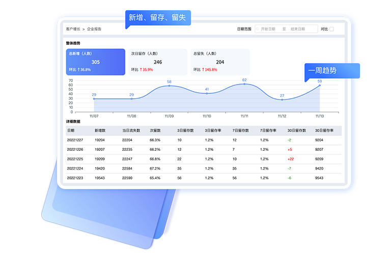 总览企业客户的实时数据,让您一目了然地掌握周期发展趋势