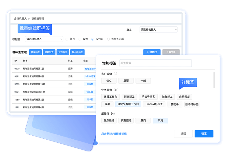 群聊标签管理,新增、删除、批量编辑