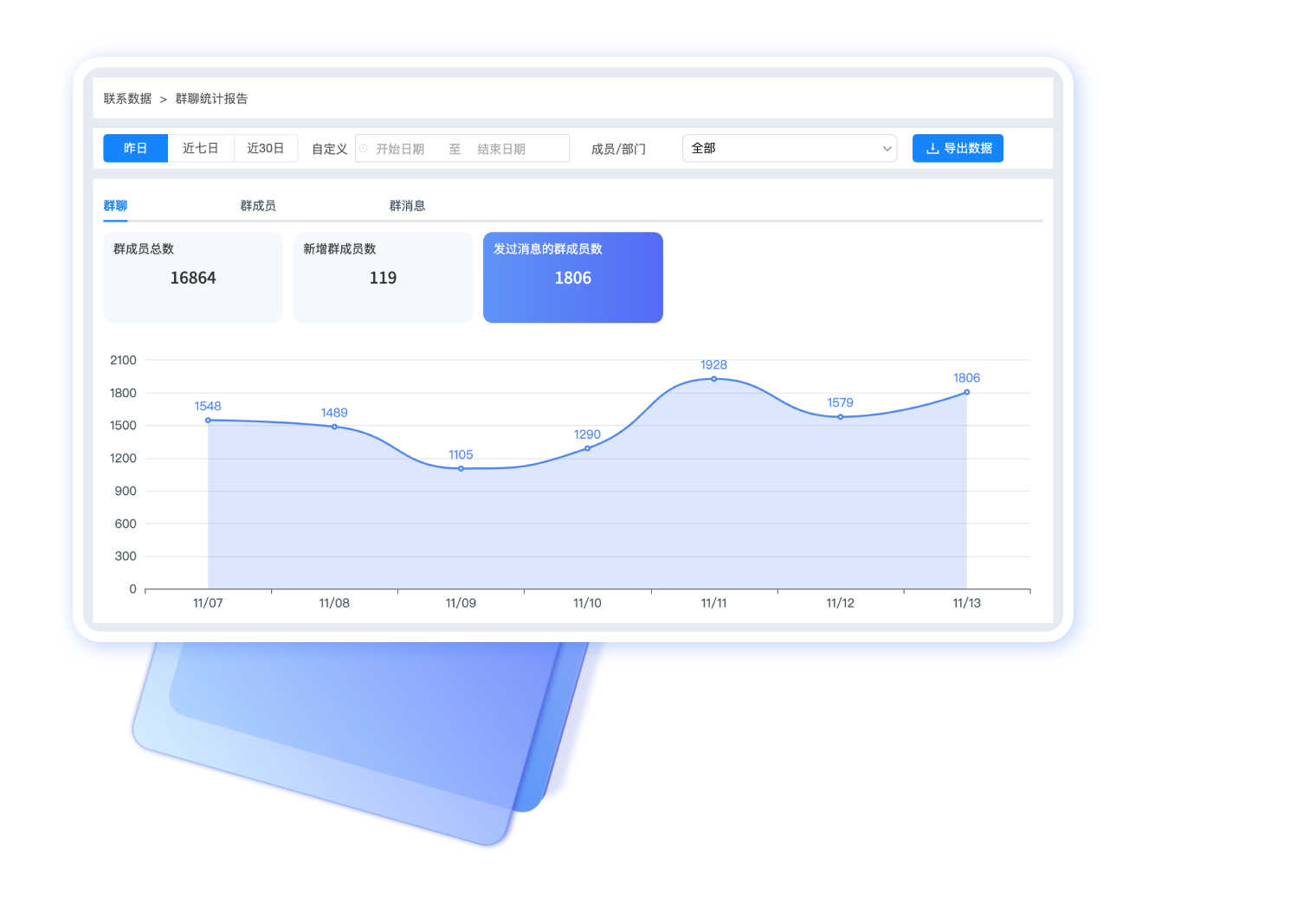 群聊总数、新增群聊数、群成员总数、新增群成员、活跃群成员统计
