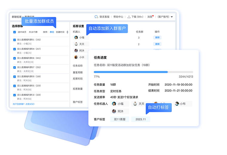 从建群到群运营管理,全周期自动化、智能化