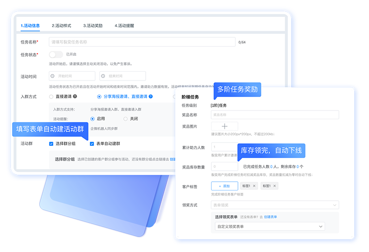 多阶任务:支持多阶任务设置,库存领完自动下线