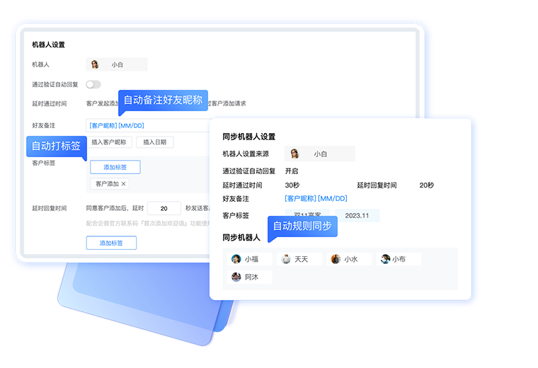 自动通过好友申请、自动打标签、自动修改客户备注