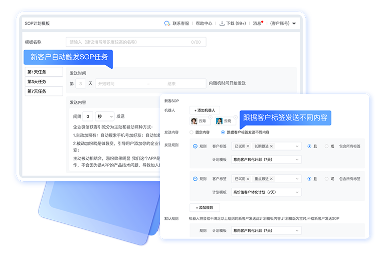 自动发送欢迎语、自动加入新客SOP……