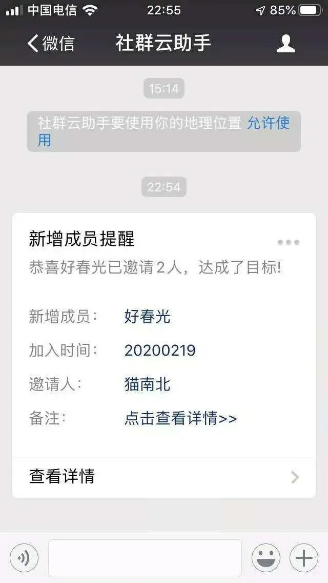 ②分享海报邀请新人进群,裂变用户和助力用户都会收到任务进度提醒